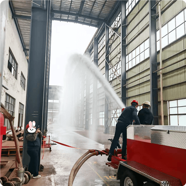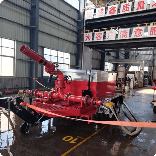 The custom fire foam monitor trailer sample has been completed. After on-site testing, the customer provided additional requirements, our technical team addressed immediately. We will now proceed with mass production.